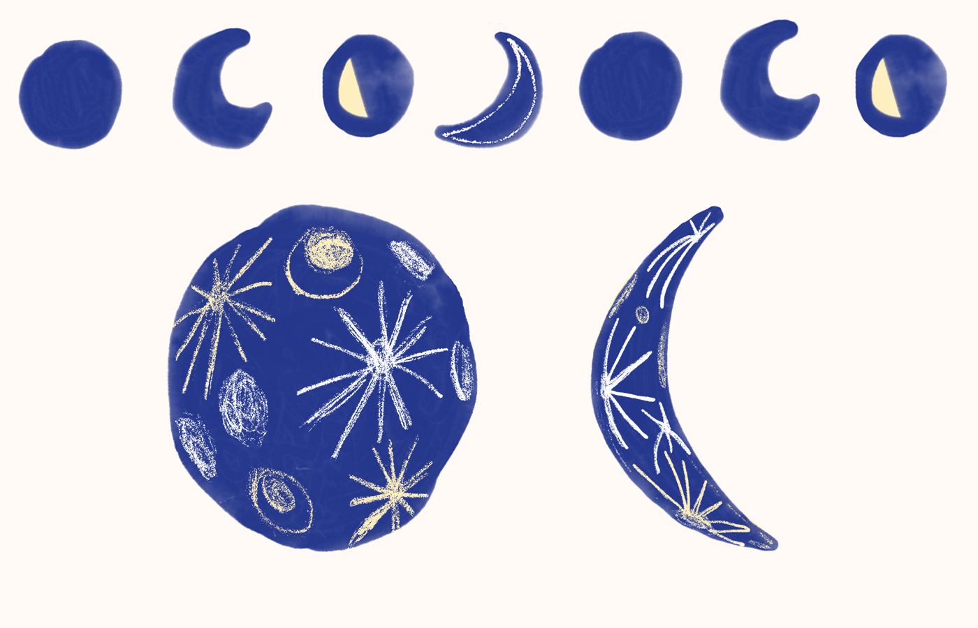 elementos luas desenhados para a estampa.